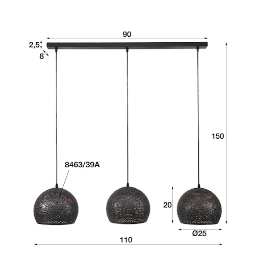 Suspension ajourée 3 demi-globes métal 110x25x150cm RALF